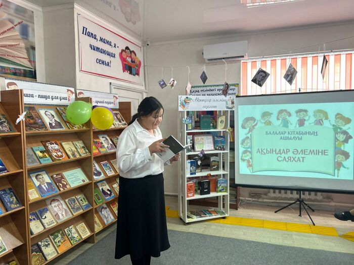 2 сәуір - Халықаралық балалар кітабы күніне орай, мектеп оқушыларының қатысуымен балалар кітапханасында «Кітап – білім көзі» атты кітап апталығының шымылдығы «Ақындар әлеміне саяхат» әдеби кешімен ашылды. Іс-шараның мақсаты – рухани құндылықтарды дәріптеу, өскелең ұрпақтың кітап оқуға деген қызығушылығын арттыру және олардың рухани байлығын дамыту. Апталықтың ашылуы кітапханашының құттықтау сөзімен басталды. «Кітап – асыл қазына» атты бейнеролик көрсетіліп, оқушыларға кітаптың адам өміріндегі маңызы кеңінен түсіндірілді. Кеш барысында оқушылар Абай Құнанбаев, Мұқағали Мақатаев және Мағжан Жұмабаев сынды қазақтың көрнекті ақындарының өлеңдерін мәнерлеп оқып, өз өнерлерін көрсетті. Сонымен қатар, «Жалғасын тап» және «Сыр сандық» ойындары арқылы оқушылар танымал өлең жолдарын жалғастырып, білімдері мен тапқырлықтарын сынады. Қорытындылай келе, «Ақындар әлеміне саяхат» әдеби кеші өз мақсатына толық жетті. Балалар кітаптың тек ақпарат көзі ғана емес, адам жанын тәрбиелейтін рухани құрал екенін терең түсінді. Апталықтың алғашқы күні жоғары деңгейде өтіп, оқушылардың әдебиетке деген қызығушылығын арттырды. Шара соңында қатысушылар естелік суретке түсіп, кітап көрмесімен танысты.