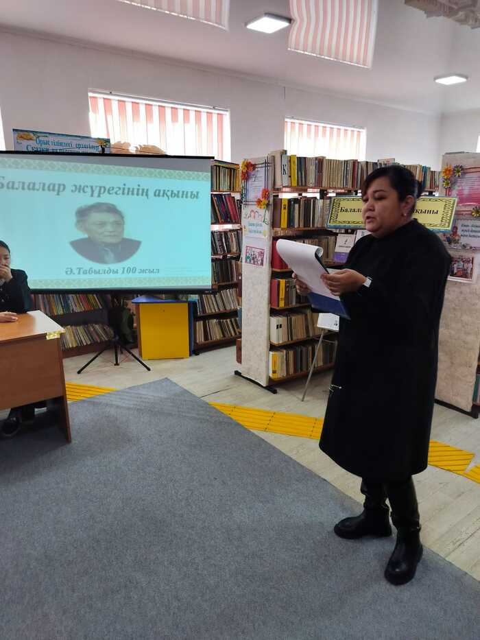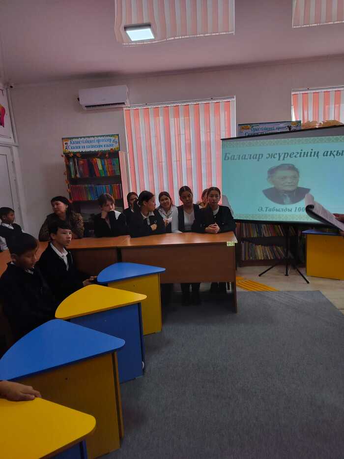 2026 жылдың 8 қаңтар күні балалар кітапханасының оқу залында ақын, балалар жазушы, драматург Әдібай Табылдының туғанына 100 жыл толуына орай «Балалар жүрегінің ақыны» атты поэзия сағаты өткізілді. Мақсаты: Қазақ балалар әдебиетінің көрнекті өкілі, ақын Әдібай Табылдының өмірі мен шығармашылығын жас оқырмандарға таныстыру. Іс-шара барысында кітапханашы поэзия сағатын ашып, оқушыларды Әдібай Табылдының туғанына 100 жыл толуымен таныстырып, ақынның балалар әдебиетіндегі орны мен маңыздылығын қысқаша баяндады. Оқушылар балаларға арналған өлеңдері мен тақпақтарын мәнерлеп оқыды.