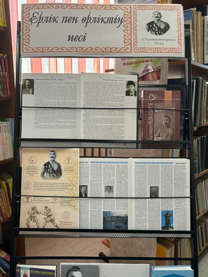 Балалар кітапханасы қазақтың даңқты палуаны Қажымұқан Мұңайтпасовтың туғанына 155 жыл толуына орай «Ерлік пен өрліктің иесі» атты тәрбие сағатын өткізді. Мақсаты: оқушыларға Қажымұқан Мұңайтпасовтың өмірі мен ерлік жолын таныстыру; Ұлттық рухты, отансүйгіштік пен батырлық қасиеттерді дәріптеу. Шара барысында Қажымұқанның өмірбаяны, балалық шағы, күрес жолындағы жетістіктері туралы және әлем чемпионаттарында жеңіске жетуі, қазақ елінің намысын қорғауы жайлы мәліметтер айтылды. Бұл тәрбие сағаты арқылы оқушылар қазақтың біртуар тұлғасы Қажымұқан Мұңайтпасовтың өмір жолымен танысып, оның ерлігі мен қайсарлығынан үлгі алды.
