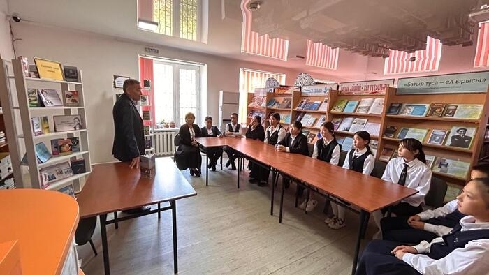 26 қыркүйек күні Еңбек күніне орай кітапхананың оқу бөлімінде ардагер ұстаз, ақын Айтбенбетов Орынбек Орынбасарұлымен «Еңбектің наны тәтті» атты кездесу кеші өткізілді. Мақсаты: Еңбек адамын ұлықтау, еңбектің қоғамдағы рөлін насихаттау. Еңбек ардагерлерінің өнегелі өмір жолын жастарға үлгі ету. Іс-шара барысында еңбек ардагерінің өнегелі өмір жолы, жас ұрпаққа берер тағылымы мен еңбектің қадір-қасиеті жайлы әңгімелер қозғалып, ардагер ұстаздың өмірлік тәжірибесі мен тағылымды ойлары жастарға үлгі етіледі. Оқушылар еңбек туралы ой бөлісіп, тағылымды пікір алмасты.