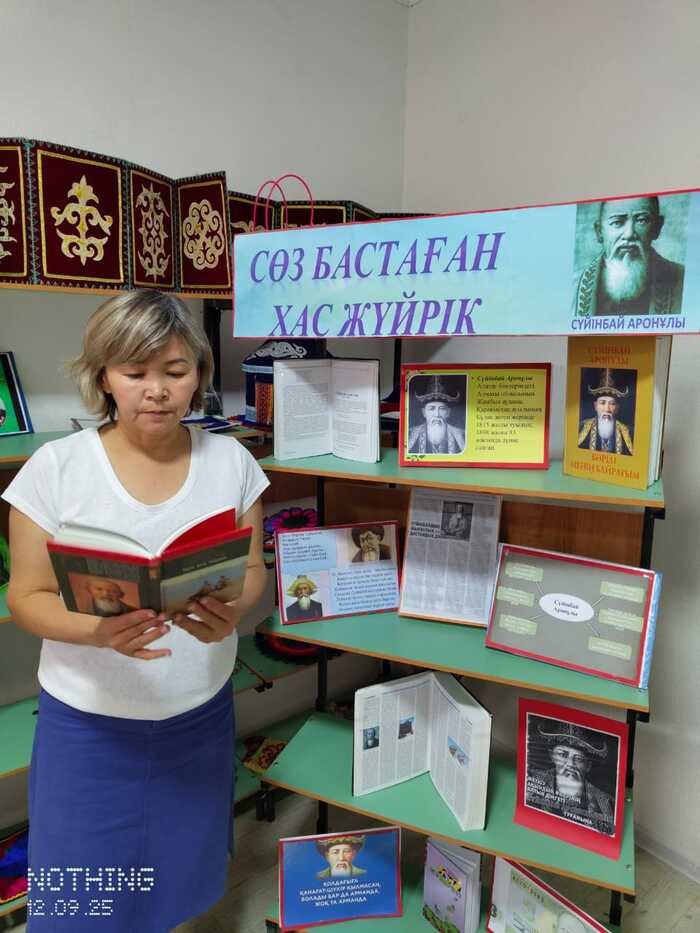 2025 жылдың 29 қыркүйек күні айтыс арысы, ақын Сүйінбай Аронұлының туғанына 210 жыл толуына орай кітапханада «Сөз бастаған хас жүйрік» атты әдеби-сазды кеш өткізілді. Мақсаты: ұлы жырау, айтыс өнерінің хас жүйрігі Сүйінбай Аронұлының шығармашылық мұрасын кеңінен насихаттау, жастарға ұлттық құндылықтарды дәріптеу. Кеш барысында айтыскер-ақын Сүйінбай Аронұлының өмір жолы мен шығармашылығы және жыр алыбының асқақ мұрасы насихатталып, айтыс өнерінің алтын діңгегі болған Сүйінбай бабамыздың өлеңдері оқылды. «Сөз бастаған хас жүйрік» тақырыбында кітап көрмесі таныстырылды.