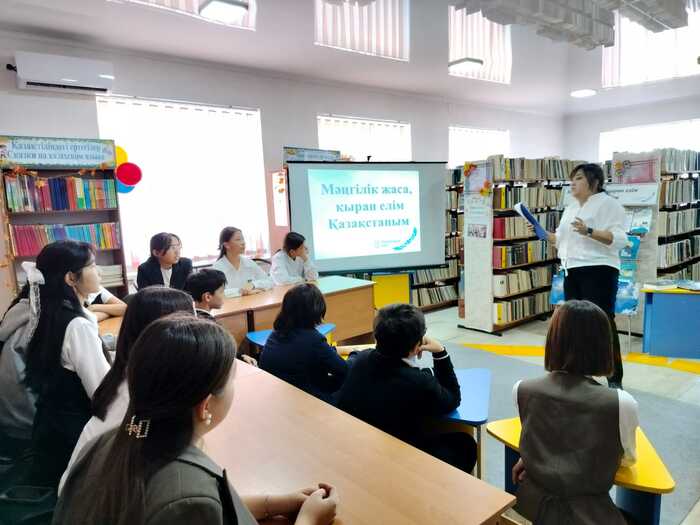 25 октября ко Дню Республики среди учащихся 8-х классов был проведен патриотический час «Мәңгілік жаса, қыран елім-Қазақстаным!». Цель: повышение любви учащихся к Родине, популяризация достижений независимого Казахстана, формирование национального единства и патриотизма. Мероприятие началось с Гимна нашей страны. В ходе мероприятия были заданы патриотические вопросы и ответы, викторины. Учащиеся глубоко понимали историю страны и сущность независимости, проявляли любовь к Родине через стихи, песни и размышления. Мероприятие было направлено на воспитание подрастающего поколения в любви к своей стране, уважении родного края, вкладе в светлое будущее Казахстана