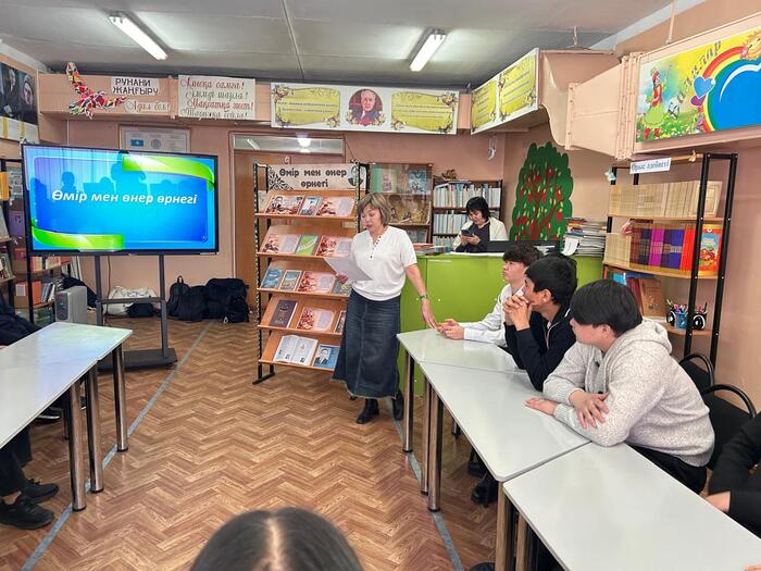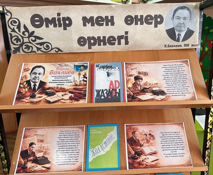 5 марта текущего года в честь 100-летия со дня рождения писателя, журналиста Карима Баялиева был проведен литературно-познавательный час «Өмір мен өнер өрнегі». Цель: познакомить читателей с жизнью и творчеством писателя, популяризировать его литературное наследие. Повышение интереса учащихся к чтению, воспитание уважения к литературе и культуре родной страны. В ходе мероприятия были рассказаны интересные факты, связанные с жизнью и творчеством писателя, представлена книжная выставка.