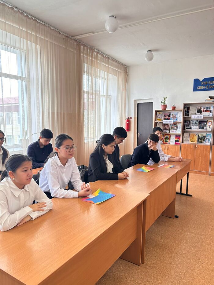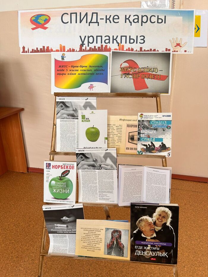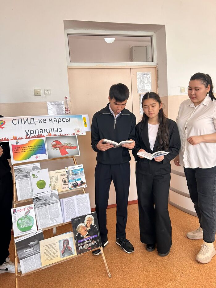 1 декабря - в честь Всемирного дня борьбы со СПИДом проведен информационный час «СПИД-ке қарсы ұрпақпыз» с участием читателей школы. Цель: дать правильное и научное понимание СПИДа. Воспитывать у молодежи ответственное отношение к своему здоровью, дистанцирование от вредных поступков.